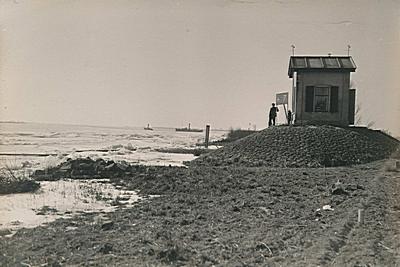 Waterpeilhuisje bij het Kop van 't Land. IJsbreker …