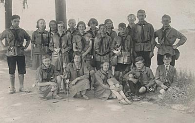 Groepsportret van leden van de AJC gemaakt tijdens een …