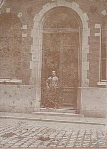 Conciërge J. Jonkers in de deuropening van de HBS aan de …