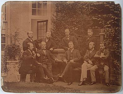 Reünisten van de Waalse Kerk in de tuin van hotel Ponsen …
