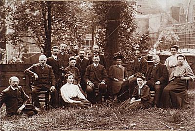 Groepsportret in de tuin van schouwburg Kunstmin aan de …