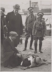 Oefening van de luchtbescherming op de Buiten Kalkhaven.