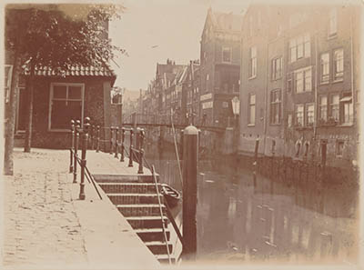 De Voorstraatshaven vanaf de Pottenkade naar de Pelserbrug.