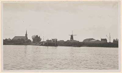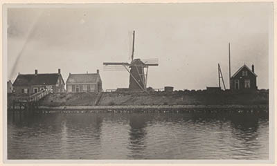 De korenmolen te Nieuw-Lekkerland, gezien vanaf de Lek.