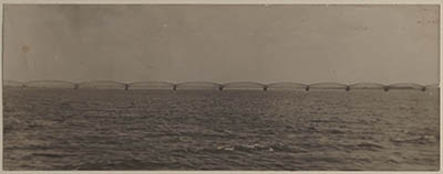 De spoorbrug over het Hollandsch Diep vanuit het westen.