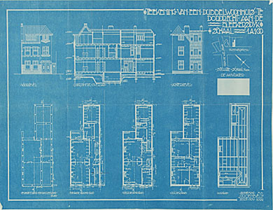 Plattegrond van een dubbel woonhuis aan de Blekersdijk.