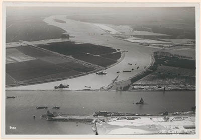 Luchtfoto van de uitgraving van de Krabbegeul. Op de …