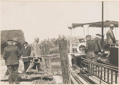 Bezoekers bij de inpolderingswerkzaamheden Biesboschpolder.