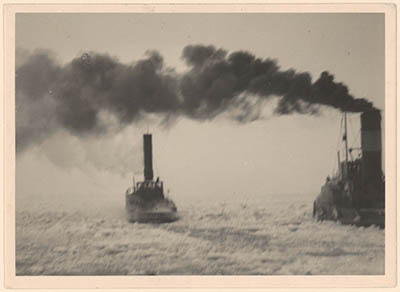 IJsbrekers op de Oude Maas tijdens de winter van 1916.