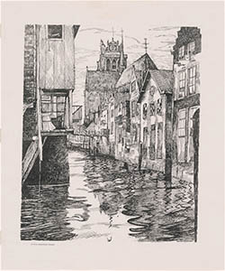 Tekening van de Voorstraatshaven tussen de Lombardbrug en …