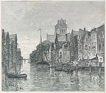 Gezicht op de Grote Kerk vanaf de Bomkade.