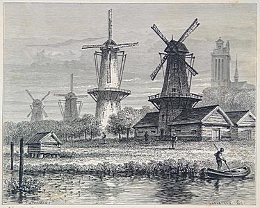 Gezicht op Dordrecht met de molens op de …