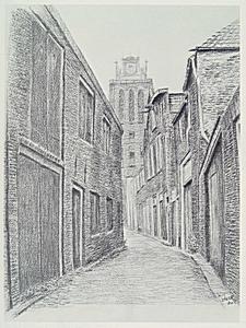 Gezicht op de Grote Kerk gezien vanuit de Molenstraat.