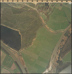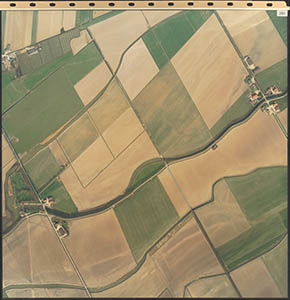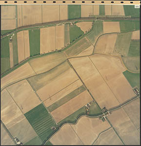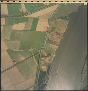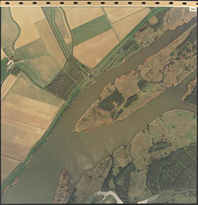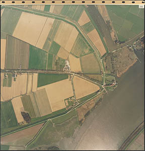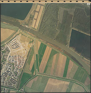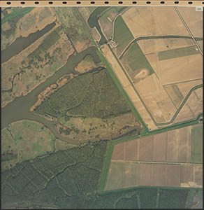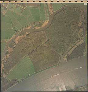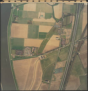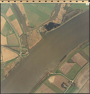 Luchtfoto van de Dordtsche Biesbosch. Onderaan de …