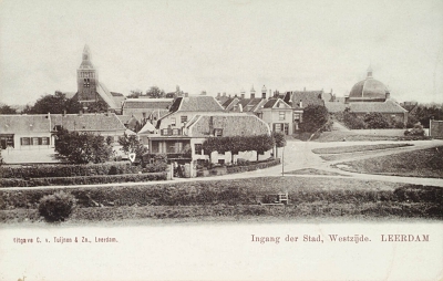 Blik op Leerdam naar het oosten gezien. Links de Grote …