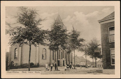 De Dorpsstraat richting de Hervormde Kerk in Oud-Alblas …