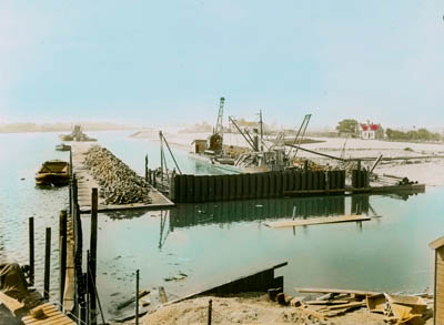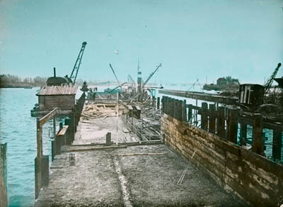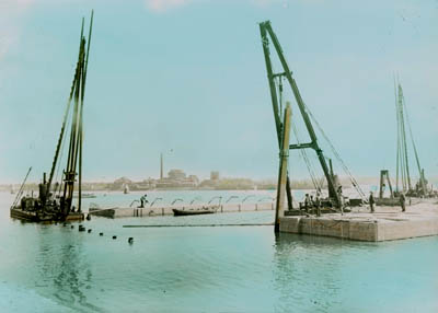 Aanleg van de pier in de Wilhelminahaven.