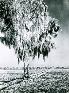 Winters polderlandschap.