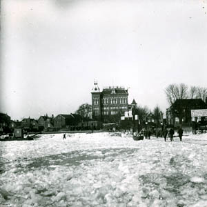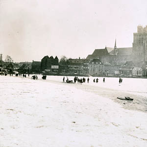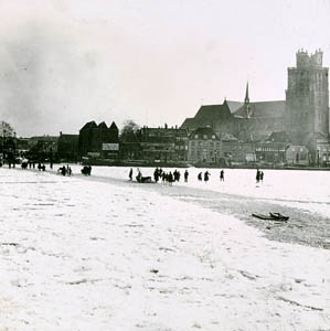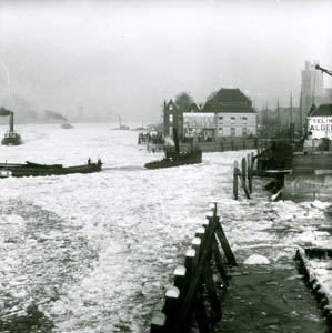 De Wijnhaven met drijfijs, gezien vanaf de Kleine …