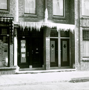 IJspegels aan woningen aan de oostzijde van de Blekersdijk.