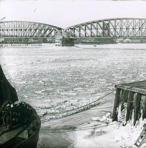 IJsgang in de Oude Maas, gezien vanaf de spoorbrug. Links …