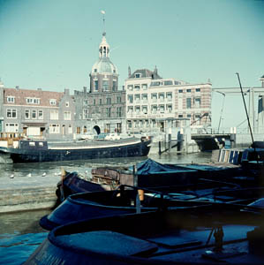 Wijnhaven vanaf de Nieuwbrug richting Boomstraat. Rechts …