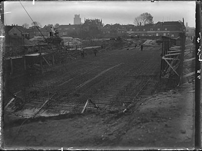 Bouwplaats van de Krispijntunnel, gezien naar het westen.