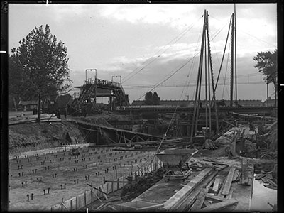 Bouw van de Krispijntunnel, naar het zuiden gezien.