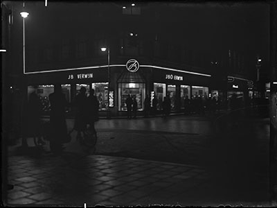 Herenmodezaak J.B. Overwijn op de hoek van de Visstraat …