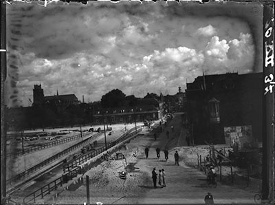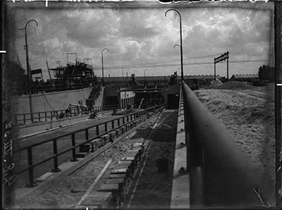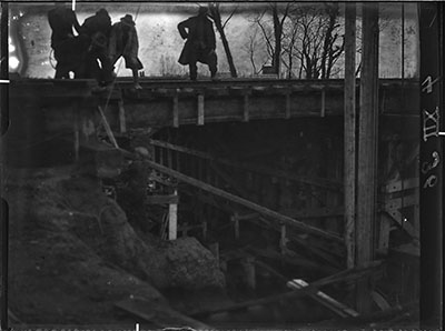 Bouw van de Krispijntunnel aan de zijde van de Spuiweg.