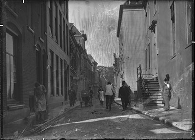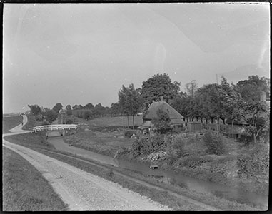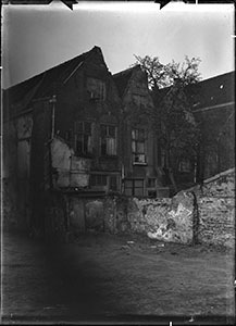 Achterzijde van panden in de Lange Breestraat, gezien …