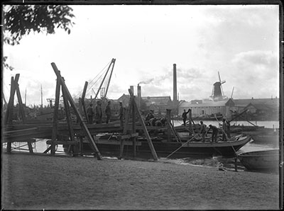 Pontonniers op het Wantij aan de Staart met molen Kijck …