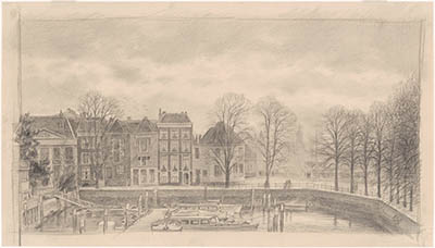 De Korte Engelenburgerkade gezien uit de Houttuinen.
