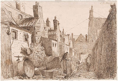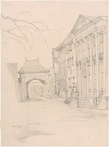 De Korte Engelenburgerkade gezien uit het Maartensgat.