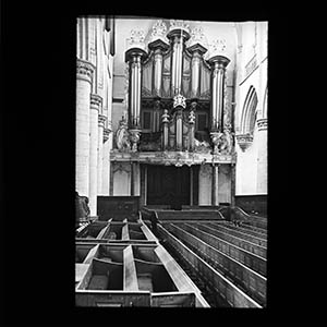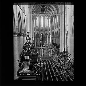 Interieur van de Grote Kerk. Op de achtergrond De …