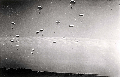 Duitse parachutisten dalen neer bij Willemsdorp.