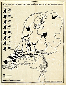 Kaart met door de Duitsers geïnundeerde (onder water …