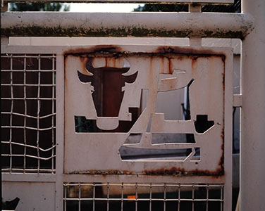 Detail van het toegangshek van het slachthuis aan de …