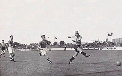 Uitwedstrijd van voetbalvereniging Emma. Midden Juriaan …