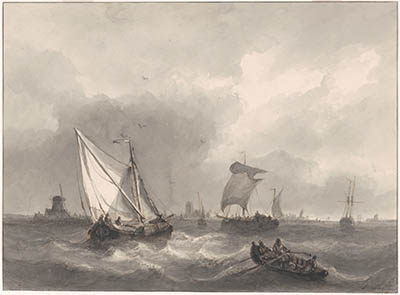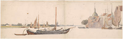 Gezicht op de stad bij het Papendrechtse veer, c. 1840.