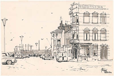 Tekening door Meeuw van Rotterdam van Hotel Bellevue en …