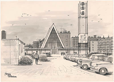 Tekening door Meeuw van Rotterdam van de Pauluskerk aan …