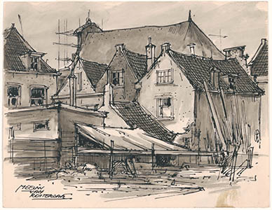 Tekening door Meeuw van Rotterdam van bebouwing in gebied …