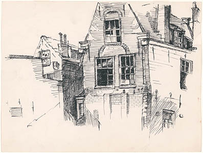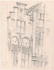 Tekening van een pand in de Lombardstraat.
