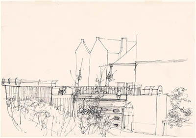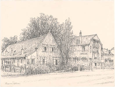 Tekening door Jan Hensema van de zuidzijde van de …