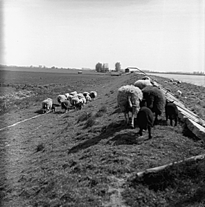 Schapen op de dijk in de Dordtsche Biesbosch
