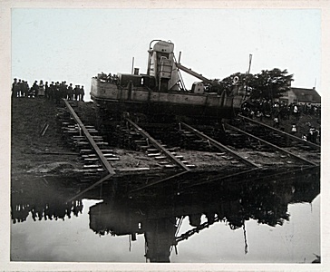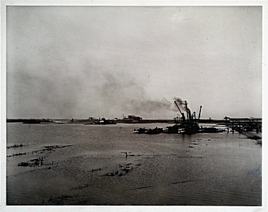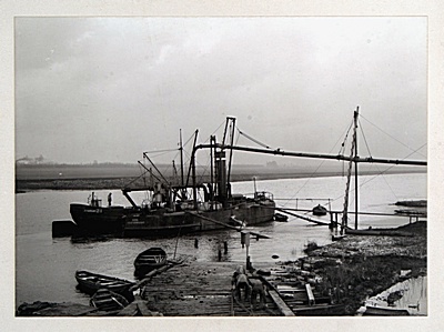 Pers- en baggervaartuig bij de aanleg Wilhelminahaven