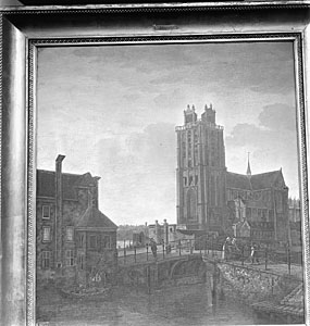 Schilderij van de Leuvebrug en de Grote Kerk aan de Lange …