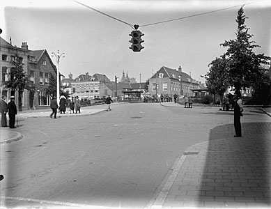 Vrieseplein en Vriesebrug vanaf de Vrieseweg gezien. Op …