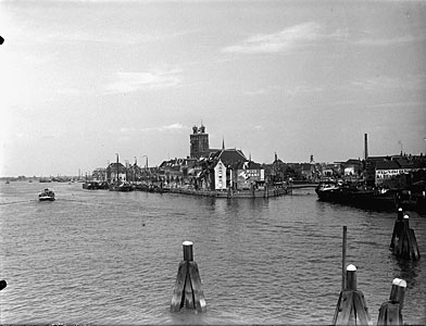 Voorstraat en Lombardbrug vanaf het Stadhuisplein. Geheel …